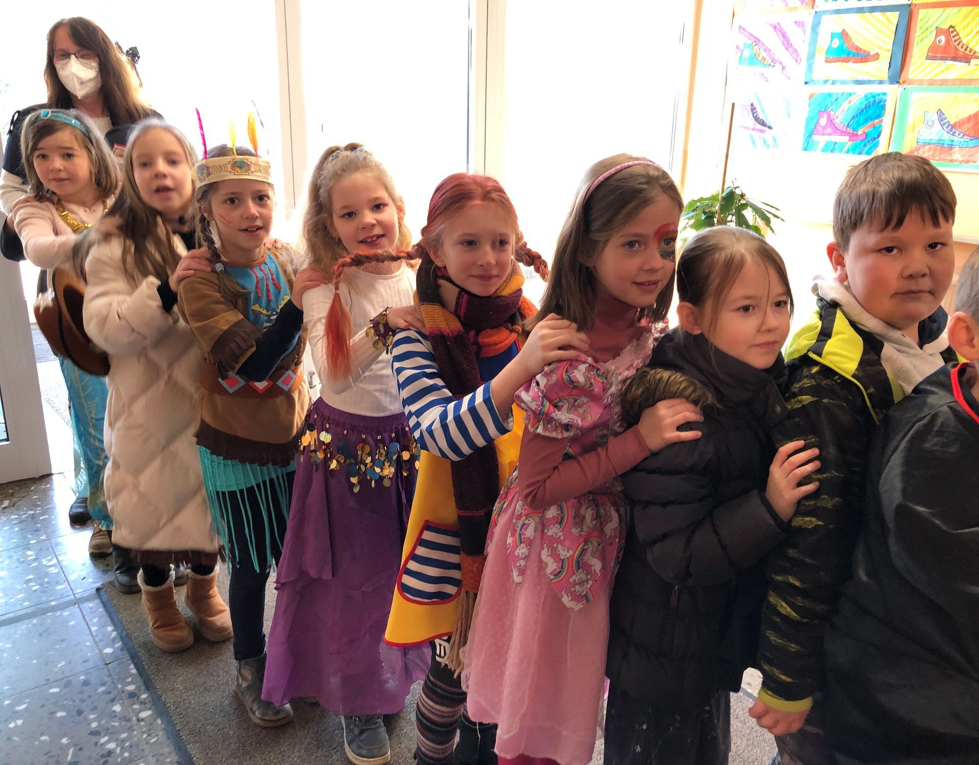Am schmotzigen Dunschtig war es soweit, denn unsere Schule wurde überrannt von PolizistInnen, Cowboys, vielen Prinzessinnen, Engeln und Teufeln, Tänzerinnen aus verschiedenen Gegenden der Welt, Piraten und Schmetterlingen. Biene Maja, Pippi Langstrumpf und das Schwarzwaldmädchen waren auch da!
