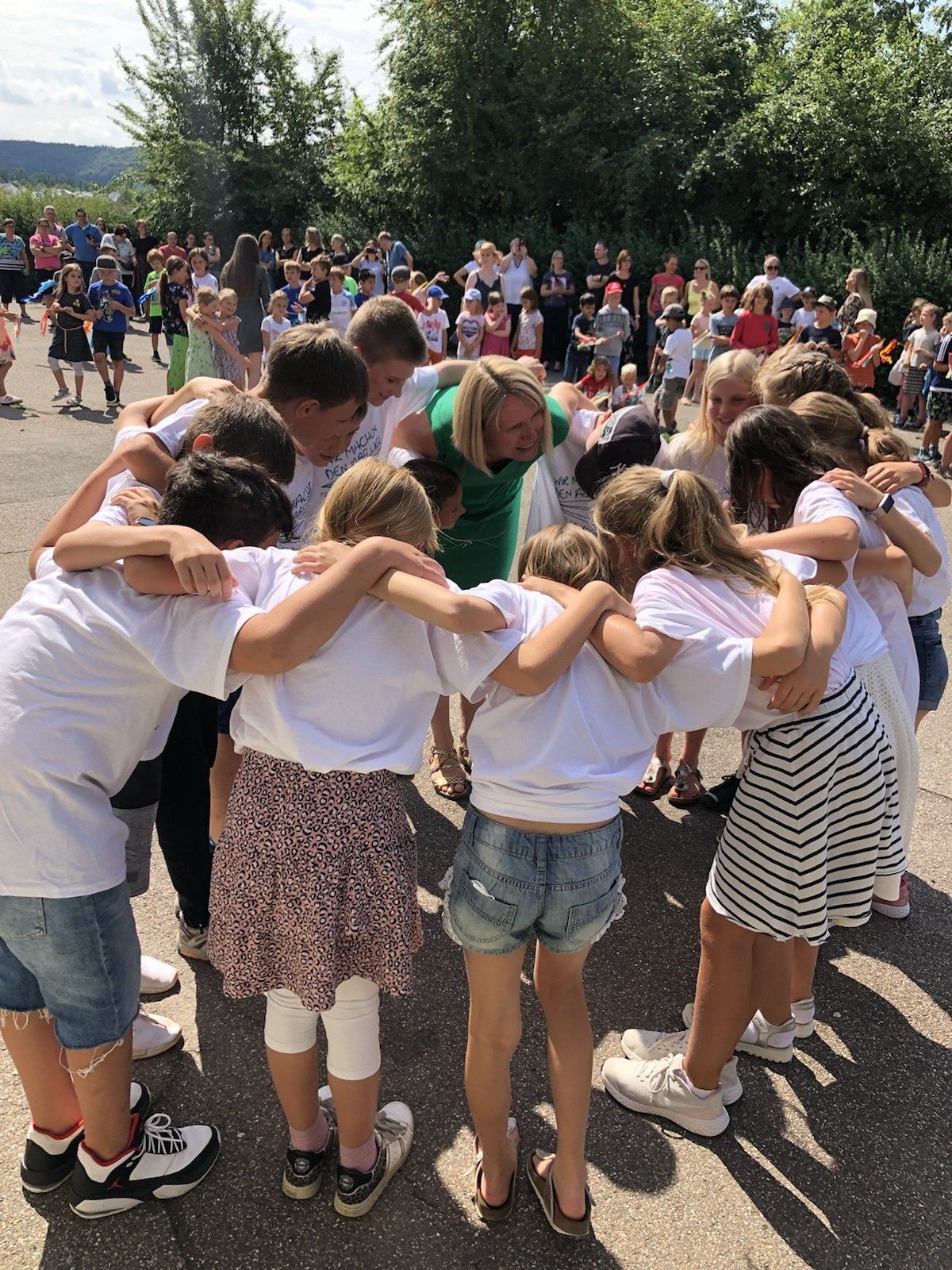 Den Brückentag, den 19.05.23, nutzten wir als Schule zum Sporttag auf dem Sportplatz. Wir begannen alle gemeinsam mit Musik und einem Aufwärmtraining. Nachdem alle gut aufgewärmt waren, starteten wir mit einem 30-minütigen Sponsorenlauf. Die Kinder gaben alles und schafften insgesamt 1271 Runden um den Sportplatz. Das war echt genial. Zahlreiche Eltern und Großeltern waren als Zuschauer mit dabei und feuerten die Läufer an. Von dem erlaufenen Geld wird nun ein Kinderheim in Peru unterstützt und für unseren Mitmachzirkus angespart.